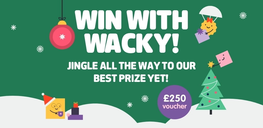Promotion open to UK residents only, aged 18+. To enter the competition entrants must visit the competition page at https://www.wackywarehouse.co.uk/christmas/competition and answer the question correctly and submit their details to be entered into the prize draw. Promotion closes at 23.59 on Monday 8th December 2025. Full terms and conditions are available at https://www.wackywarehouse.co.uk/christmas/competition. Promoter: Greene King Brewing and Retailing Ltd, Sunrise House, Ninth Avenue, Burton upon Trent DE14 3JZ.